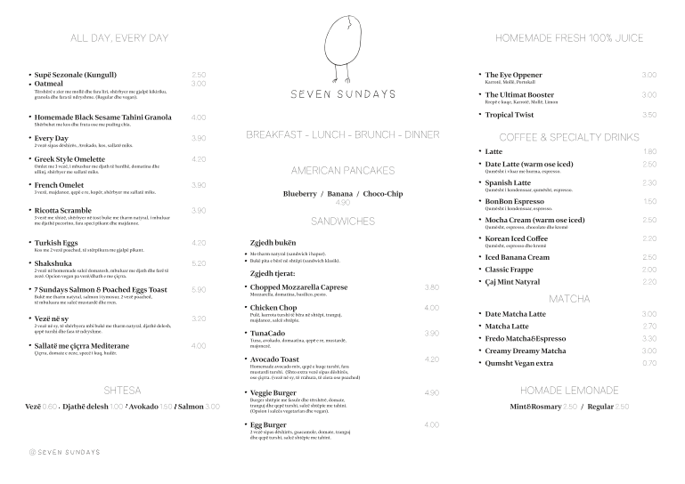Welcome to Seven Sundays, a charming café nestled in the heart of Icon Tower, Tirana. This cozy brunch spot has garnered attention for its delightful atmosphere and delectable offerings. As you step inside, you're greeted with a trendy vibe that promises a memorable culinary experience.